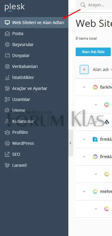Sol menüde bulunan Web Siteleri ve Alan Adları seçeneğine tıklıyoruz.